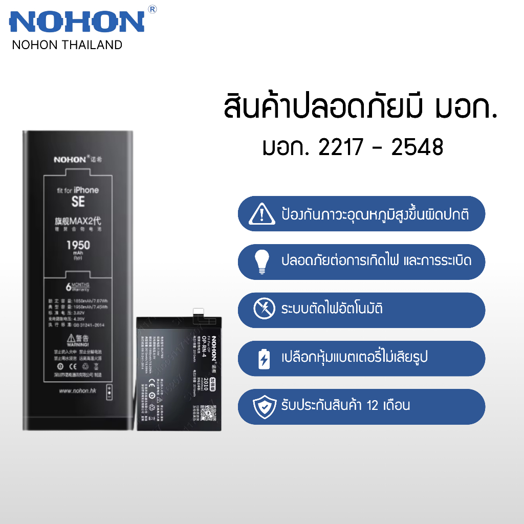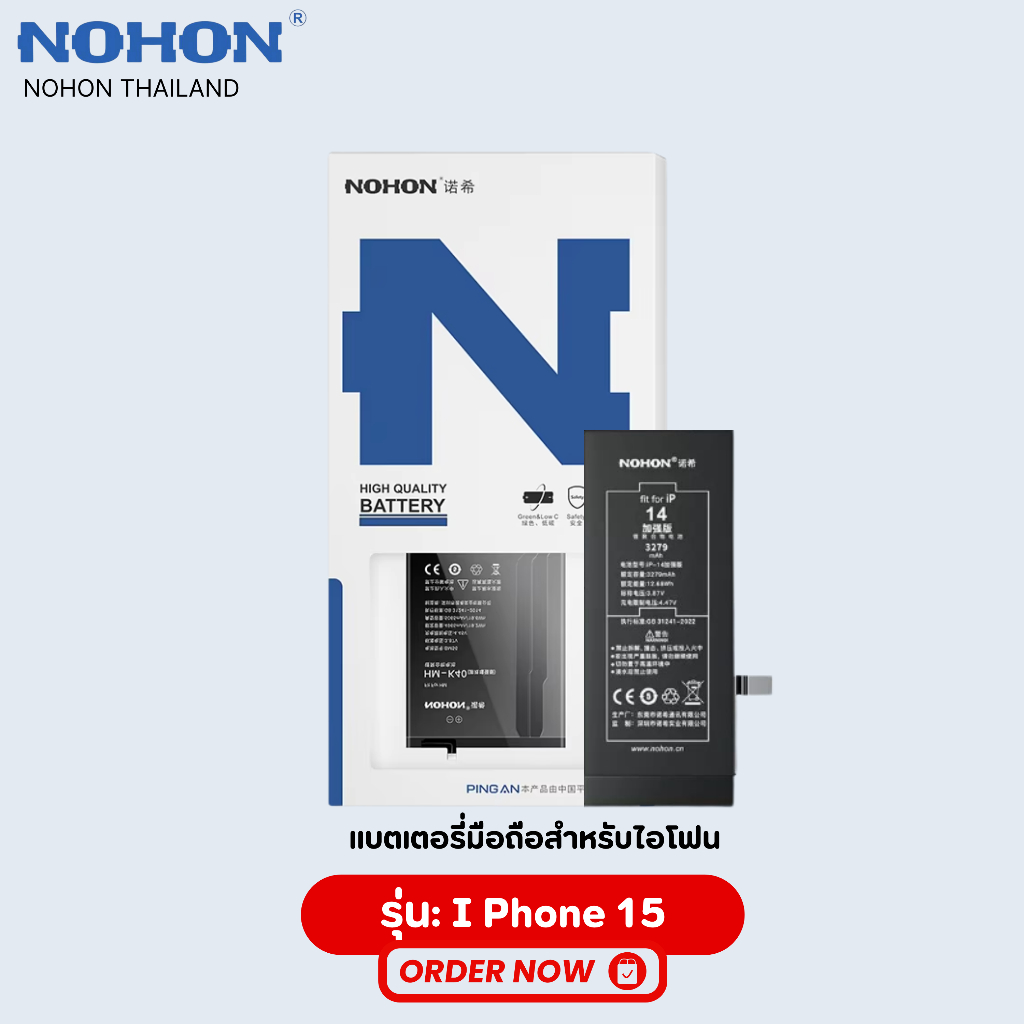 Nohon แบตใช้สำหรับไอโฟน i14 - i15 ประกัน 1 ปี “ ใช้สำหรับไอโฟน