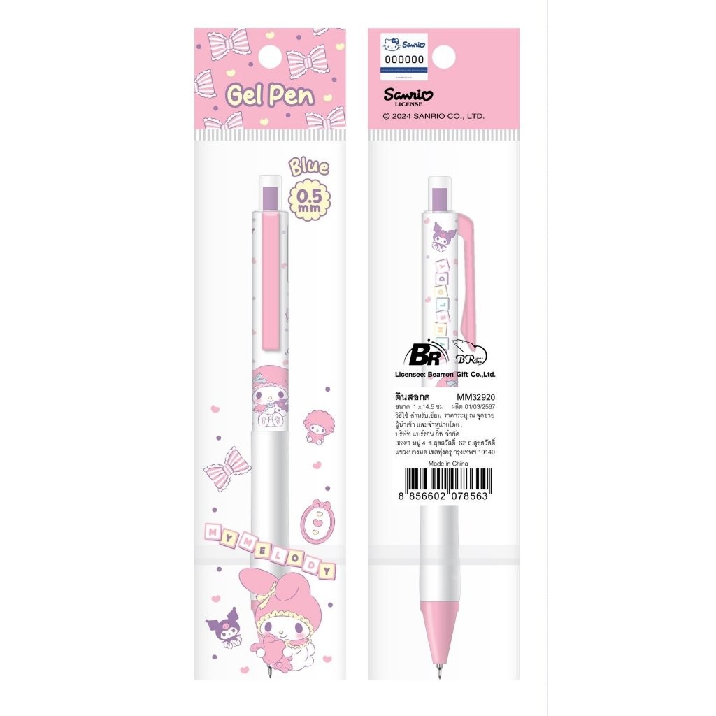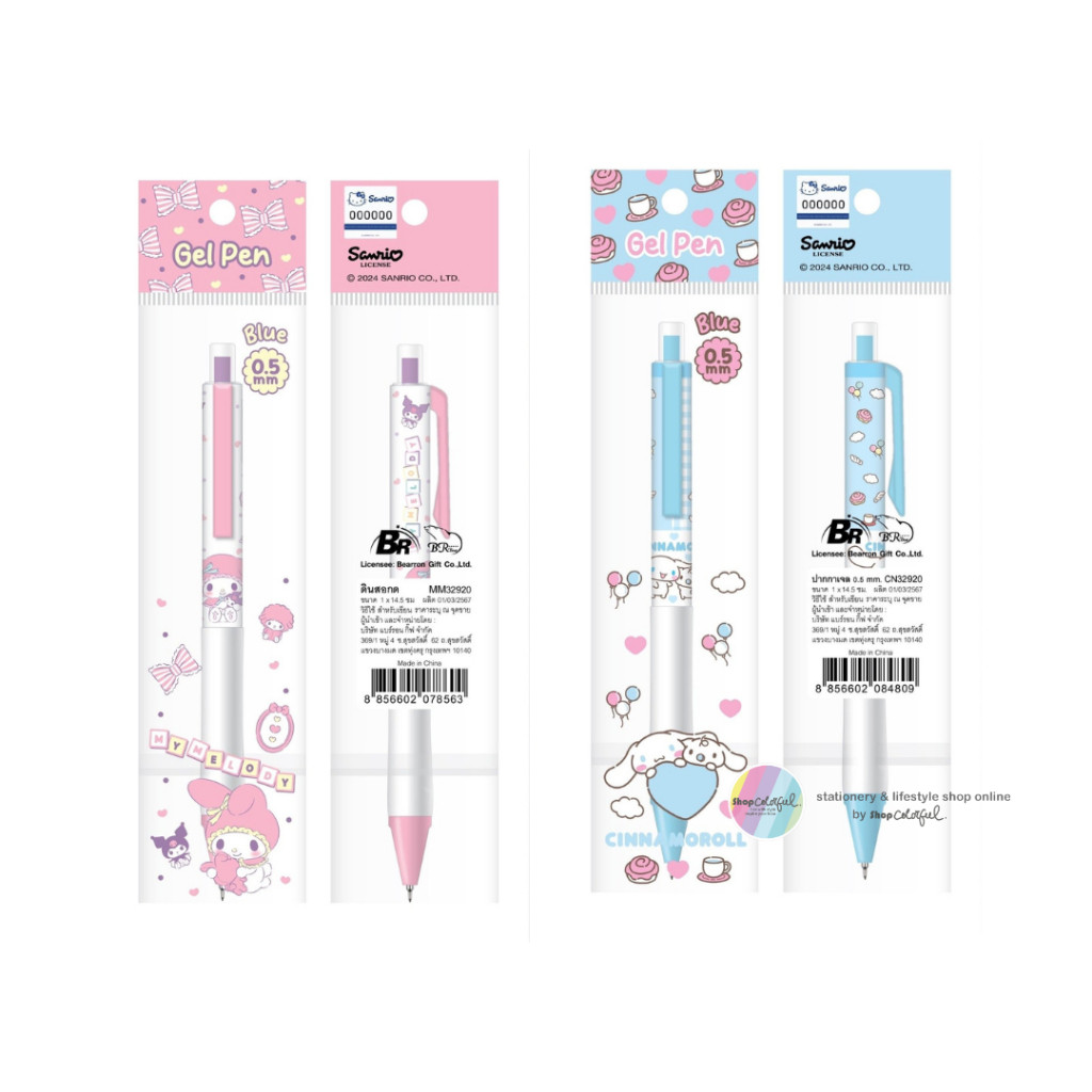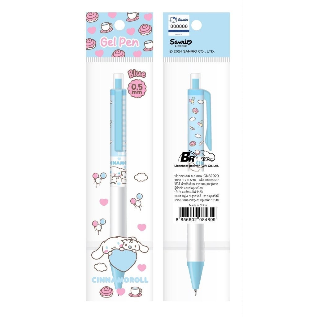 BR ปากกาหมึกเจลสีน้ำเงิน ลายลิขสิทธิ์แท้จาก Sanrio ลาย Cinnamoroll | My Melody | Keroppi | Kuromi