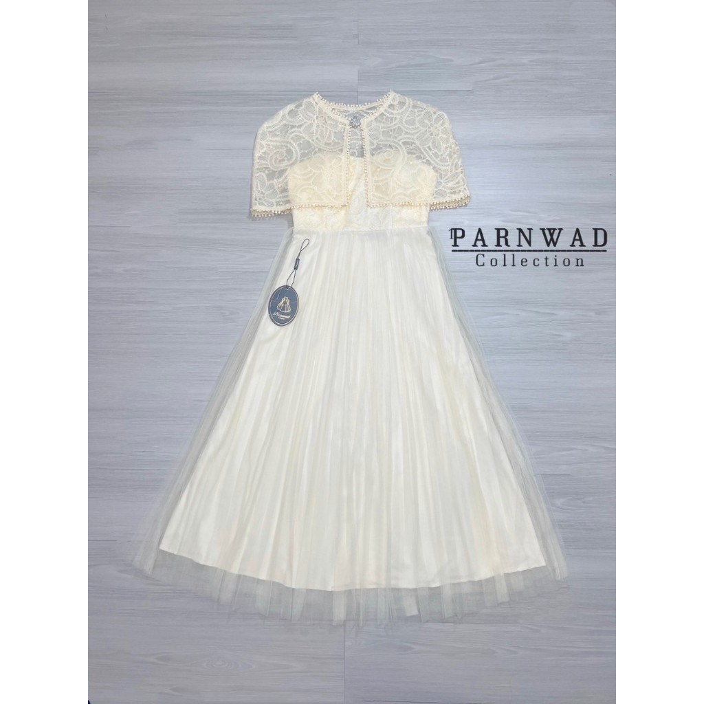 🚩ร้านโค้ดคุ้ม🚩 Parnwad 4 เดรสลูกไม้+เสื้อคลุม+เข็มกลัดเพชร ใส่ออกงาน งานบุญ งานบวช แฟนนาค งานแต่ง