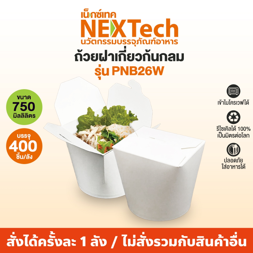 Nextech(รวมรุ่น)ถ้วยกระดาษหมี่ไก่ฉีก PNB (400 ชิ้น/ลัง) ถ้วยกระดาษฝาเกี่ยวก้นกลม ด้วยกระดาษฝาเกี่ยว ถ้วยหมี่ไก่ฉีก26ออนซ