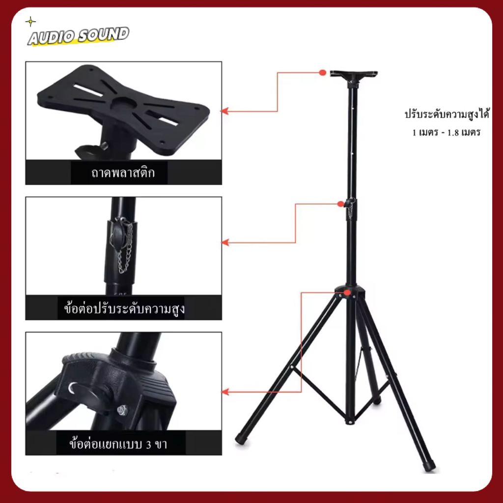 NEW ขาตั้งลำโพง ขาตั้งตู้ลำโพง ที่วางลำโพง พร้อมฐานวางลำโพง ปรับได้หลายระดับ 120cm กับ ตัว180cm เลือกได้