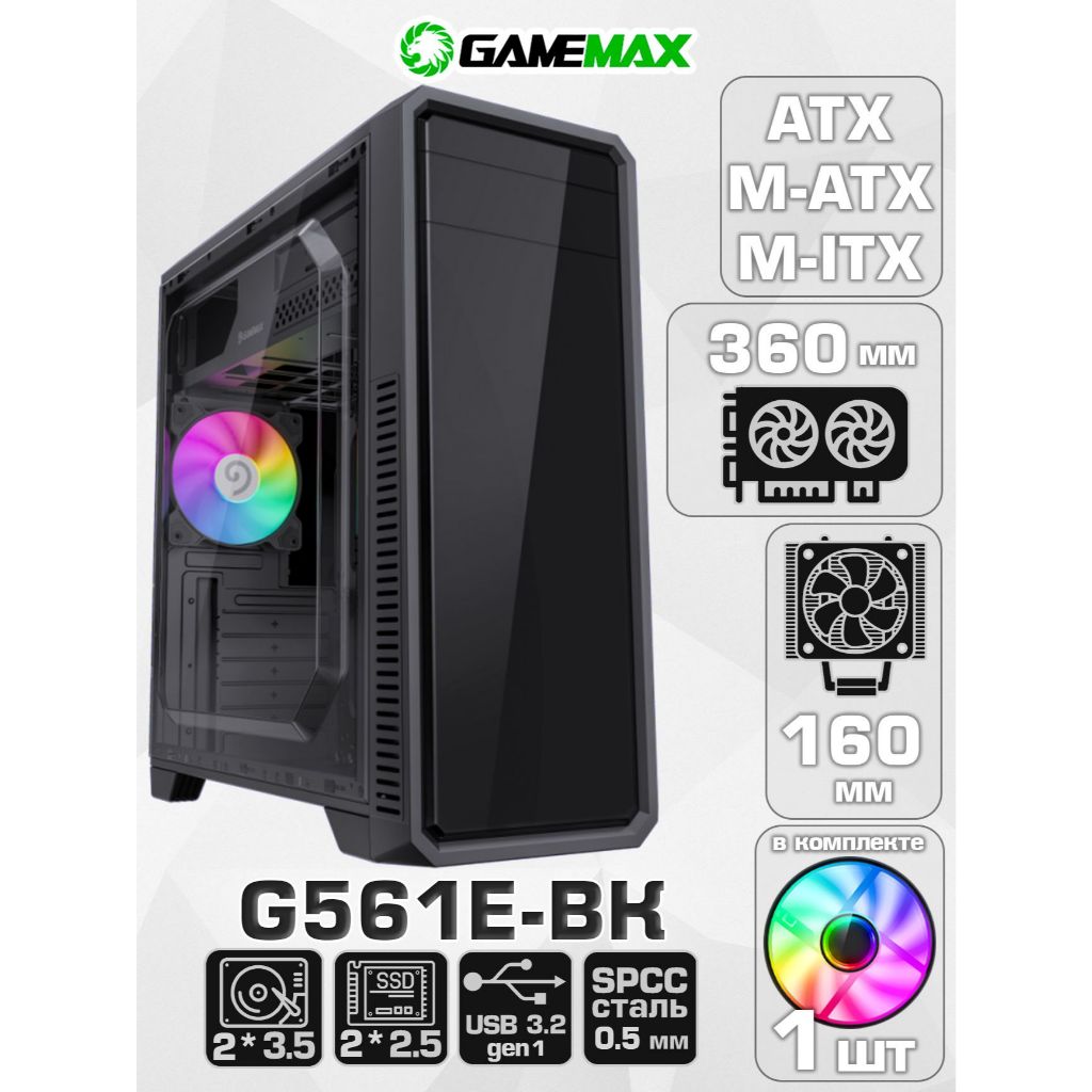 GameMax CASE G561E-BK ATX Black Chassis Acrylic Front Panel&Side Panel เคสคอมพิวเตอร์
