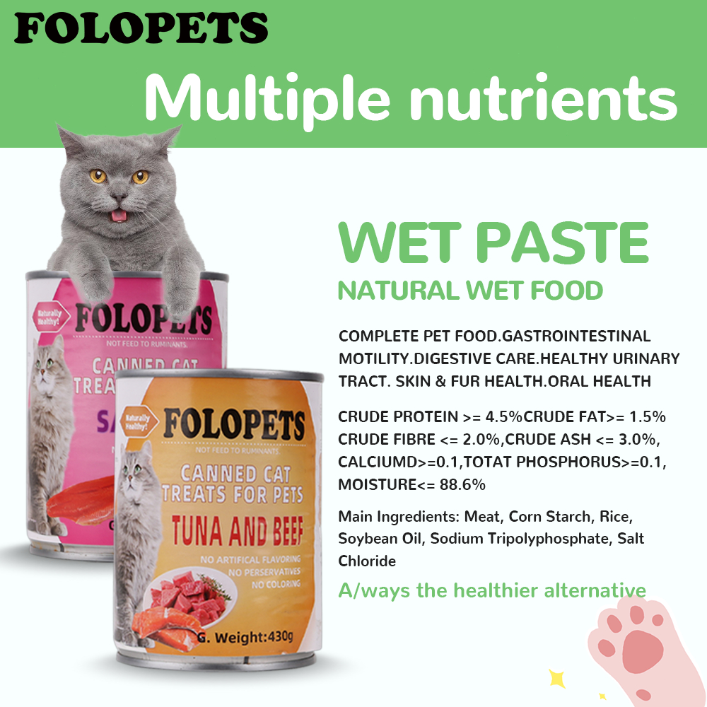 FOLOPETS อาหารแมวเปียกในกระป๋อง 430g แมวอินทรีย์ธรรมชาติบริสุทธิ์สามารถอาหารแมวหลายรสได้ เหมาะสำหรับทุกเพศทุกวัย