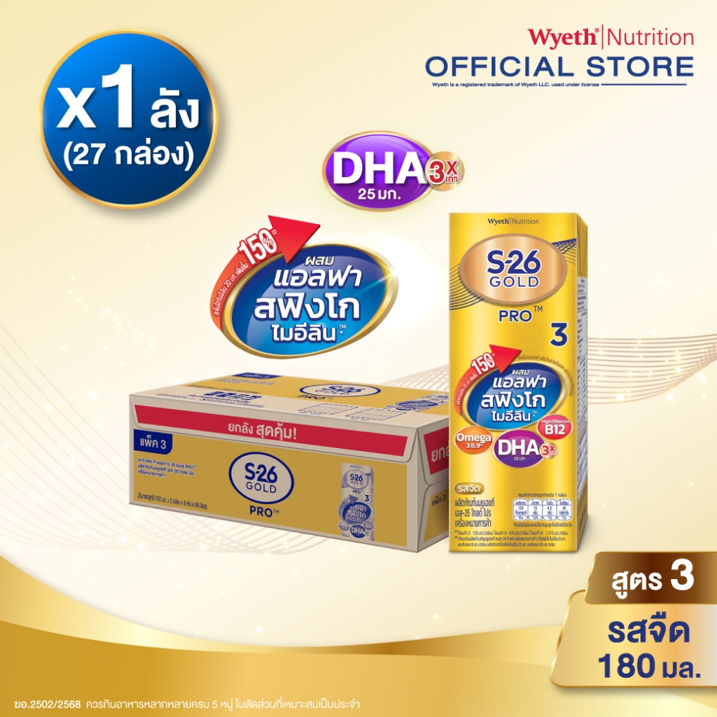 นมกล่อง เอส 26 ยูเอชที โกลด์โปร สูตร 3 (27 กล่อง) ยกลัง x1 S-26 Gold Pro UHT Formula3 x1 cases