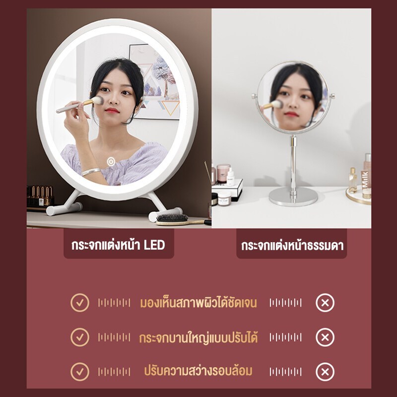 LP กระจกแต่งหน้า LED HD กระจกโต๊ะเครื่องแป้ง 30/40cm มีแสง 3 เกียร์ปรับได้