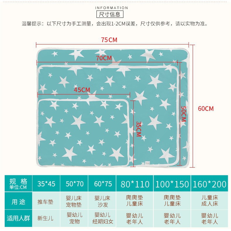 BAY เบาะรองนอนเด็กทารก แผ่นรองกันเปื้อน รองฉี่ กันน้ำ ผ้ารองเปลี่ยนผ้าอ้อม ผ้าปูรองนอน