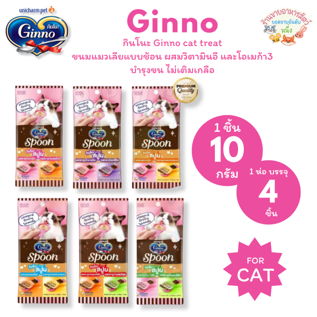 Ginno กินโนะ สปูน Ginno Spoon ขนมแมวเลีย บำรุงขน ผิวหนัง ผสมวิตามินอี และโอเมก้า 3 10g.x4ชิ้น