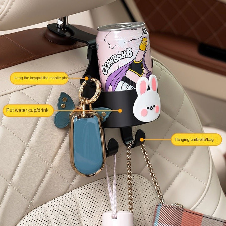 2 ชิ้นมัลติฟังก์ชั่รถที่นั่งกลับตะขอ,รถถ้วยน้ําผู้ถือและผู้ถือโทรศัพท์มือถือ,รถตะขอแขวนจัดเก็บสําหรับร่ม,คีย์,กระเป๋า,เสื้อผ้า