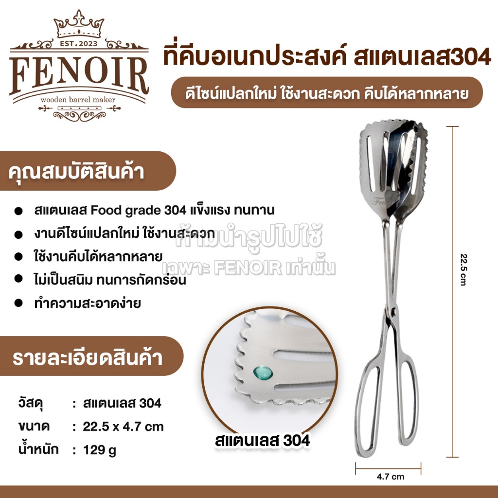 FENOIR คีบอเนกประสงค์ สแตนเลส304 Food grade ที่คีบน้ำแข็ง หยิบจับอาหาร เนื้อย่าง ขนมปัง บาร์บีคิว งานพรีเมี่ยม