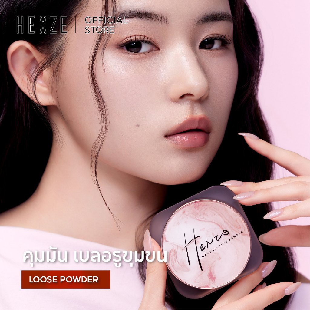 [COD]HEXZE powderแป้งฝุ่นเนื้อละเอียดพิเศษ บางเบาไม่หนักหน้าเบลอรูขุมขนคุมมัน เซ็ตเมคอัพ ไม่ฟุ้งกันน้ำ กันเหงื่อ ติดทนนา