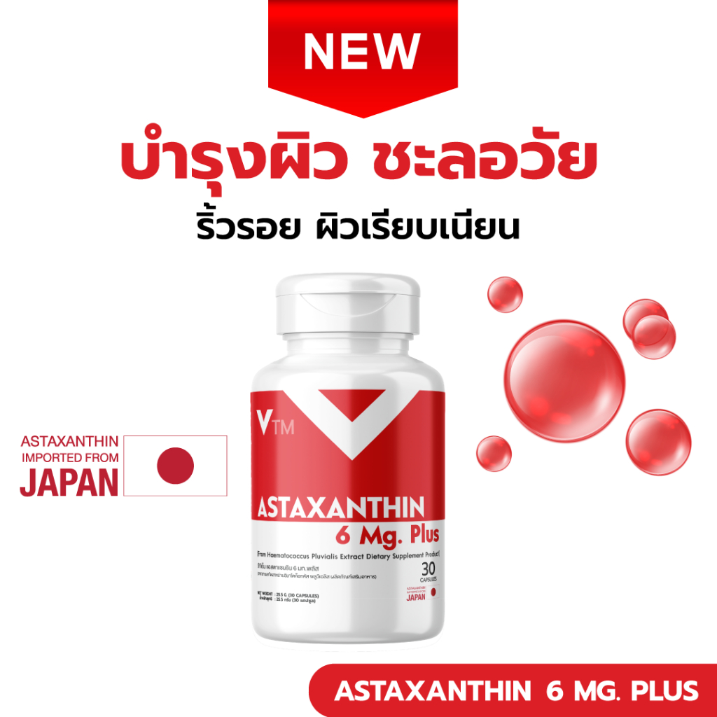 VTM Astaxanthin 6 mg. วีทีเอ็มแอสต้าแซนทีน สาหร่ายแดง ต้านอนุมูลอิสระ ชะลอวัย ผิวใส