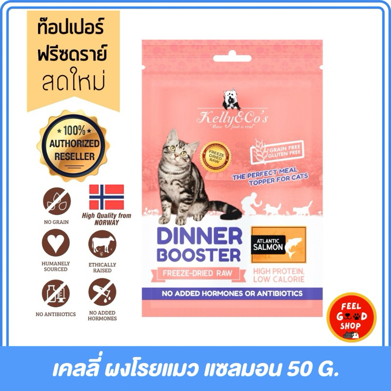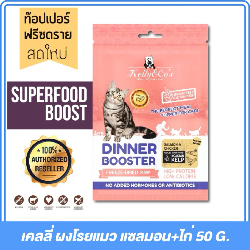 [ซองชมพู]เคลลี่แอนด์โค (Kelly & Co's)บูสเตอร์ ท๊อปเปอร์ ผงโรยอาหารแมว โปรตีนฟรีซดรายเข้มข้น 50 กรัม