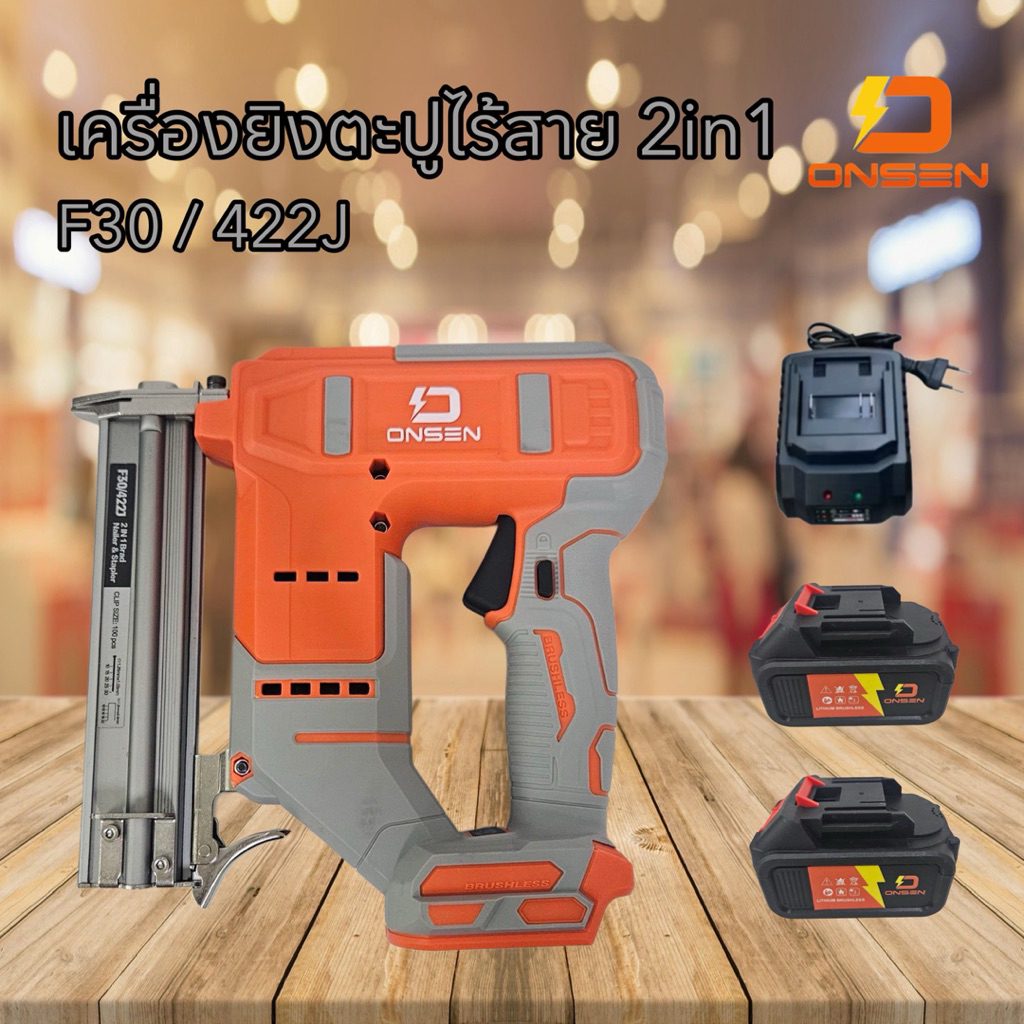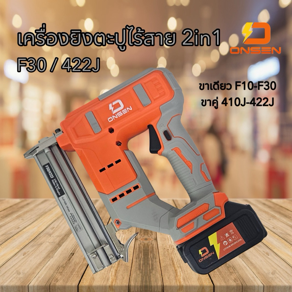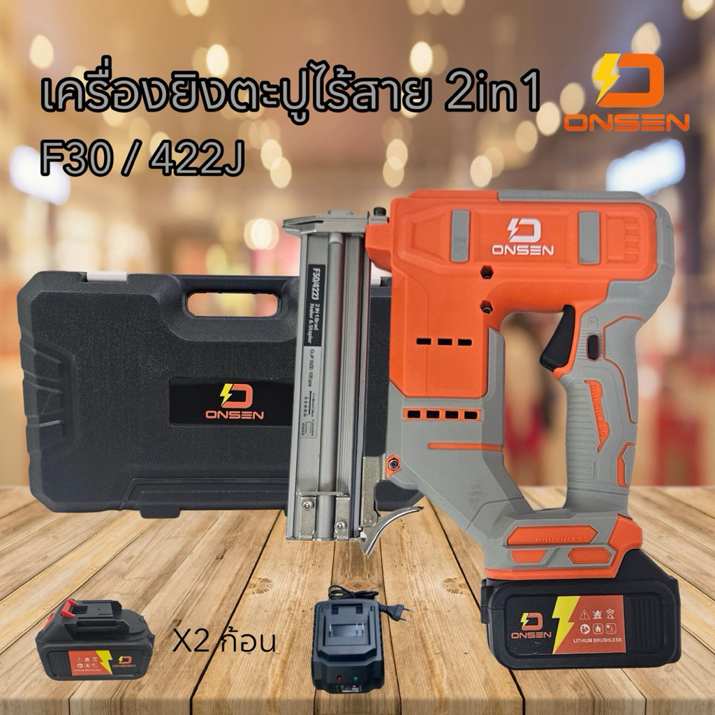 ONSEN เครื่องยิงตะปูไร้สาย แม็กไร้สาย 2in1 (ขาเดียว F10-F30 / ขาคู่ 410J-422J) แบตเตอรี่ก้อนใหญ่ 2 ก้อน พร้อมกล่องเก็บ