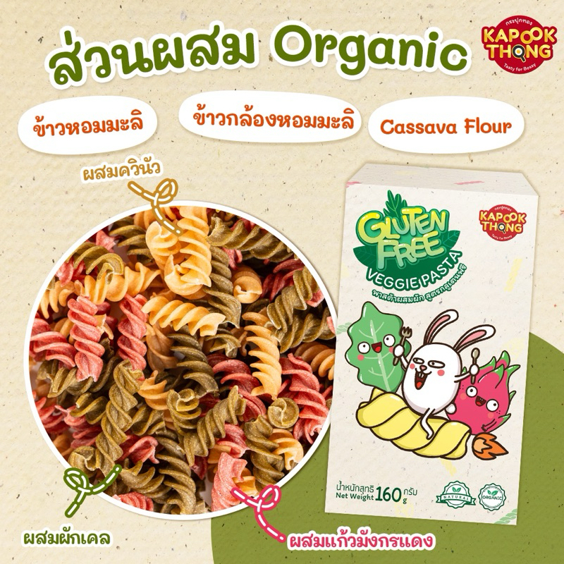 NEW‼️ KAPOOKTHONG พาสต้า Superfood กลูเตนฟรีออร์แกนิค พาสต้าเด็กแพ้ เกลียวผสมผัก ใยอาหารสูง