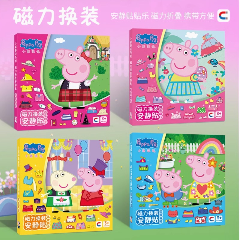 Peppa Pig Magnetic Dress Up สติกเกอร์เงียบสไตล์ใหม่ Girl Boy Puzzle สติกเกอร์