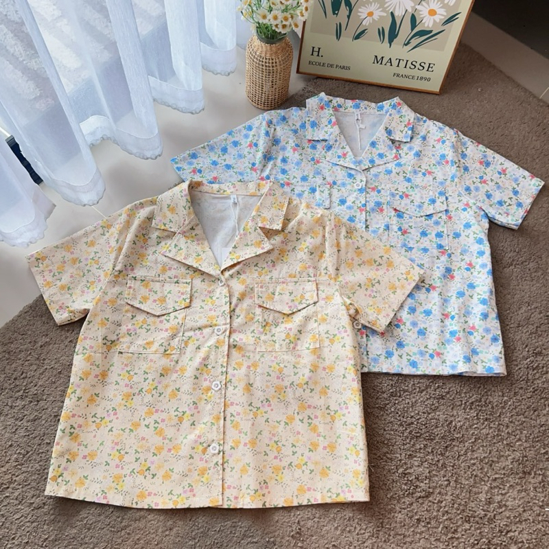 เสื้อคอปกเชิ้ตลายดอกไม้