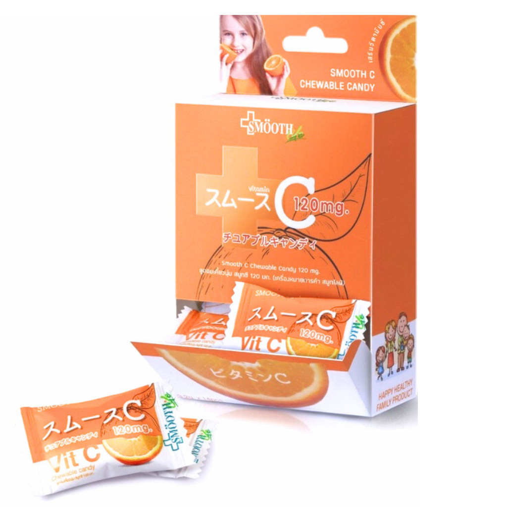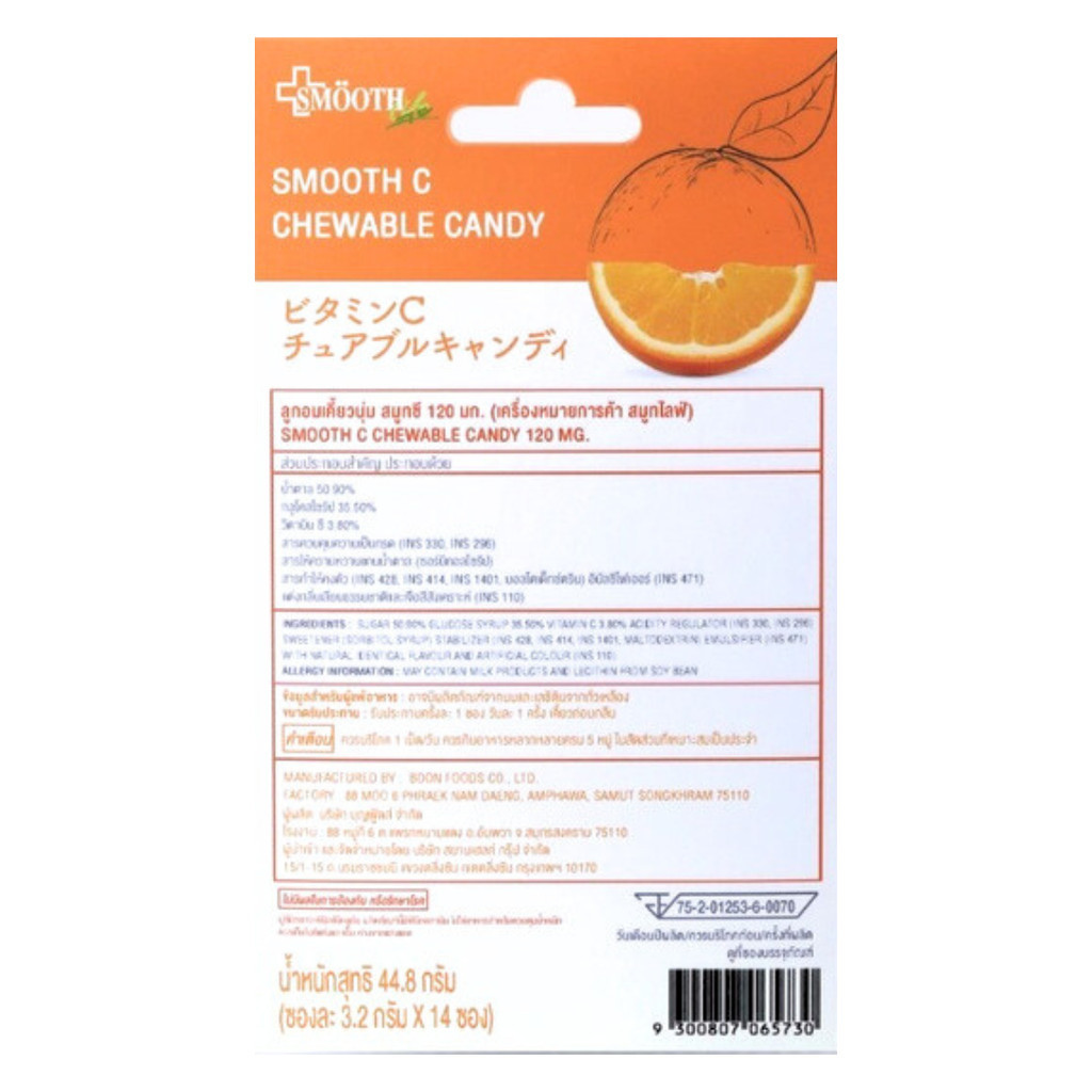 (หมดอายุ 08/2026) Smooth Life ลูกอมเคี้ยวนุ่ม วิตามินซี Vit C 120 mg. สมูทอี บรรจุ 14, 30 ชิ้น [PC]