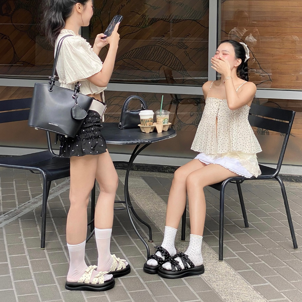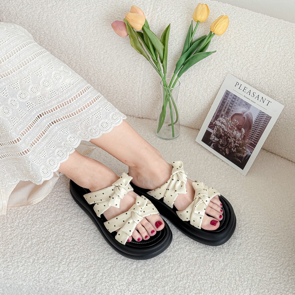 CHOCCHIP✨รองเท้าลายจุด ส้นตึกสูง 4 cm งานหนัง นิ่มมาก น่ารักที่สุด