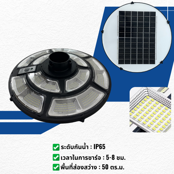 (UF400) ไฟโซล่าเซลล์ UFO 400W ไฟถนน LED 692 Solar Light วัตต์แท้ กันน้ำ IP65 โคมไฟโซล่าเซลล์ ทรงกลม พลังงานแสงอาทิตย์