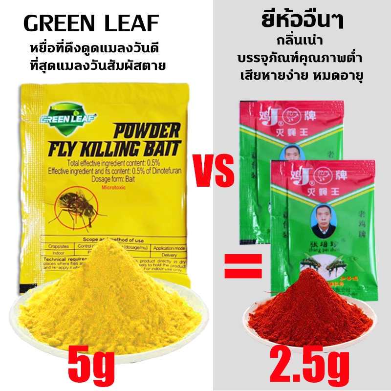 แมลงวันชอบกินสัมผัสแล้วตาย GREEN LEAF ผงไข่เน่า ยาฆ่าแมลงวัน 1กล่อง20ซอง เหยื่อแมลงวัน กำจัดแมลงวันเห็บหมัดแมลงสาบยุง