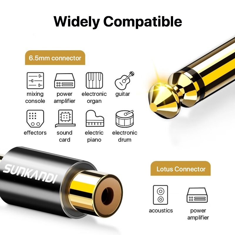 อะแดปเตอร์เสียง SUNKANDI 6.35 มม. เป็นอะแดปเตอร์หูฟัง RCA Aux Jack