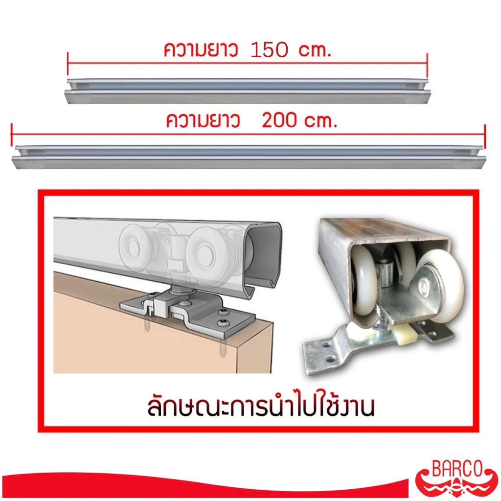 BARCO รางแขวนอลูมิเนียม 1.6 นิ้ว ยาว 200 ซม. (รางเปล่า)