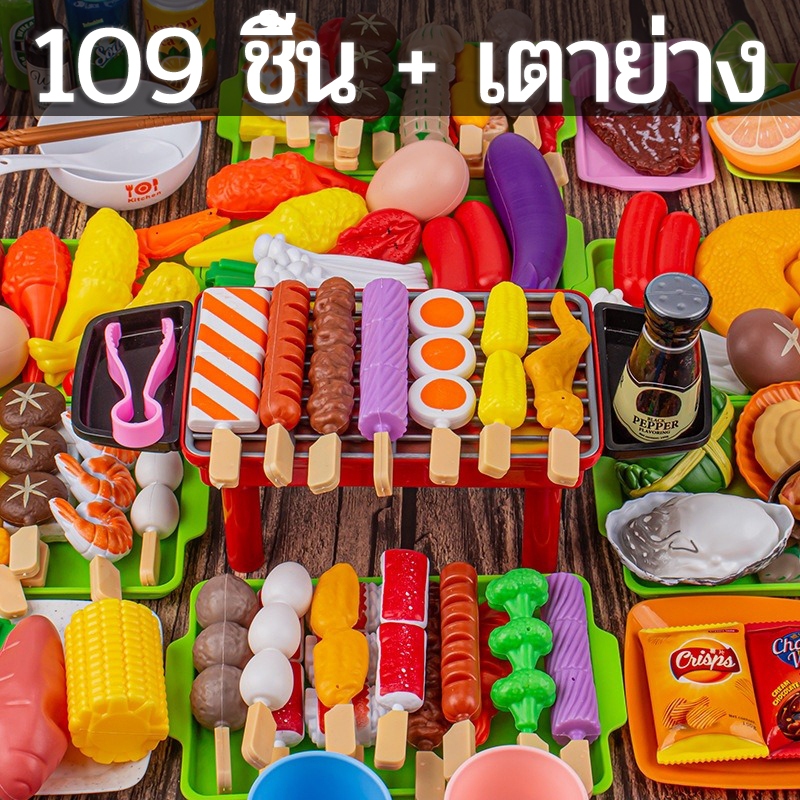 BBQ 109PCS ของเล่นบาร์บีคิว ของเล่นทำอาหาร อาหารจำลอง ฝึกทักษะการลงมือของเด็กๆ บาร์บีคิวจำลองสำหรับเด็ก แกล้งเกม