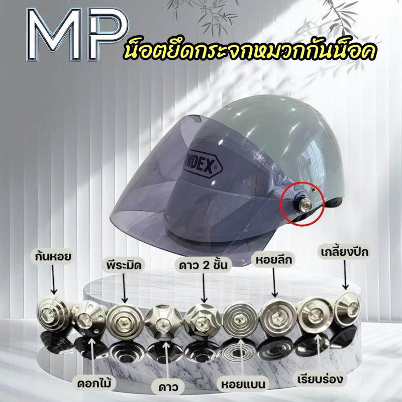 (เฉพาะน็อต)น็อตยึดกระจก หมวกกันน็อคINDEX 1ชุดจะมี2ตัว มีหลายลายให้เลือก