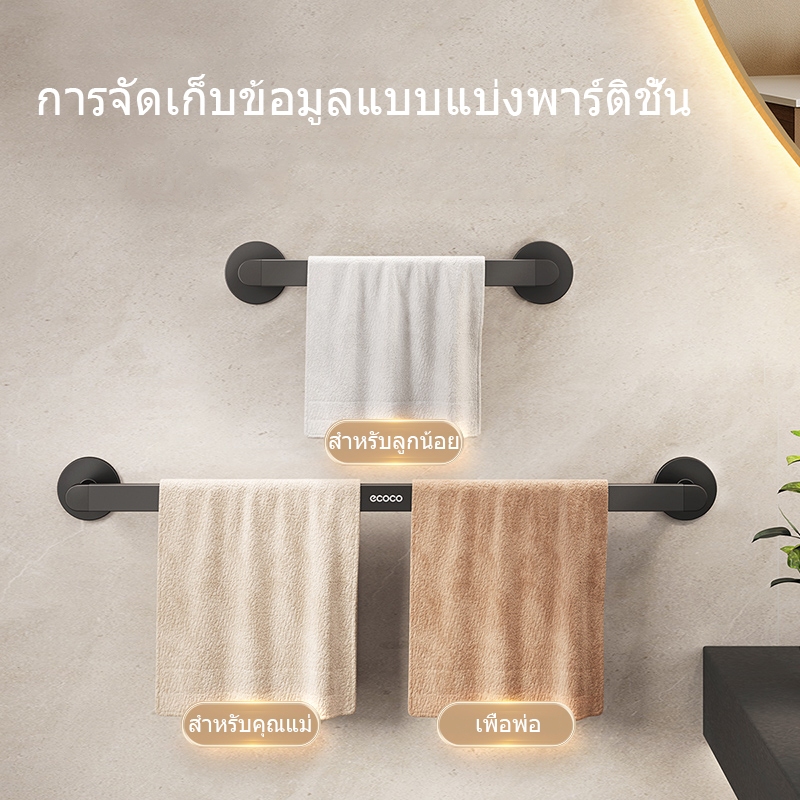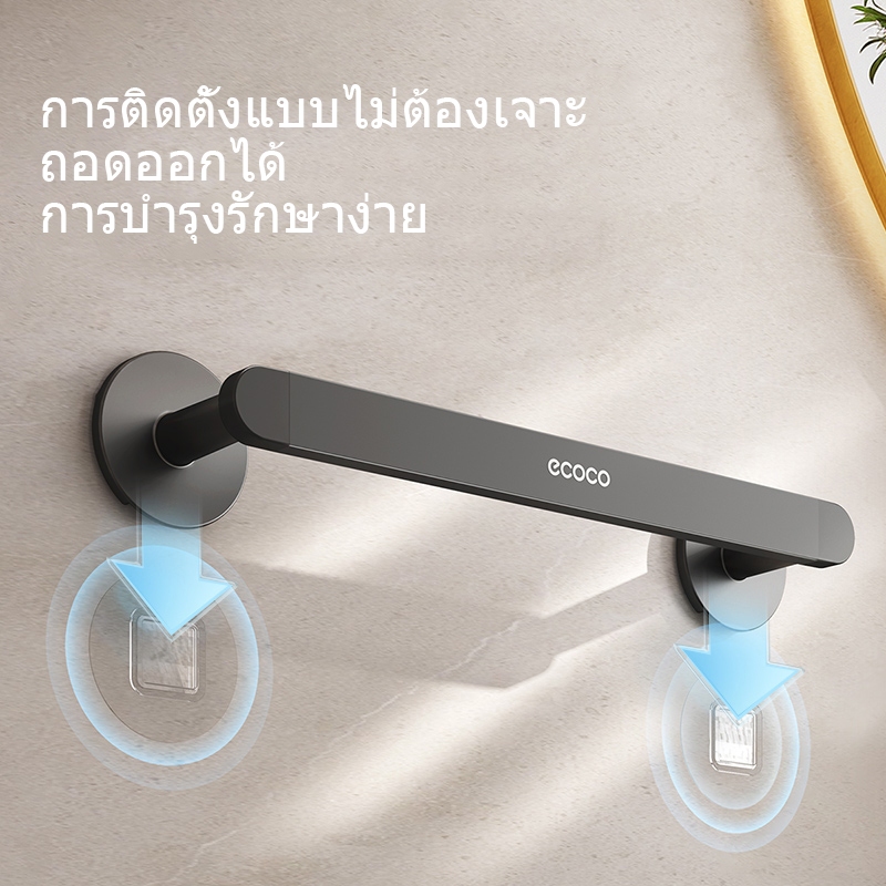 ecoco ราวพาดผ้าอลูมิเนียม ติดผนัง กันน้ำ ไม่เป็นสนิม ไม่ต้องเจาะผนัง ที่แขวนผ้าขนหนู ราวตากผ้า E24089-24093