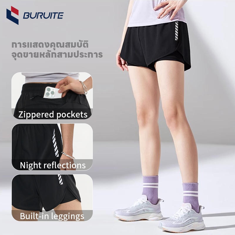 กางเกงวิ่งมีกระเป๋า 2IN1 มีซับใน มีกระเป๋า ป้องกันการโป๊ เหมาะสำหรับการวิ่งและฟิตเนส กางเกงวิ่ง