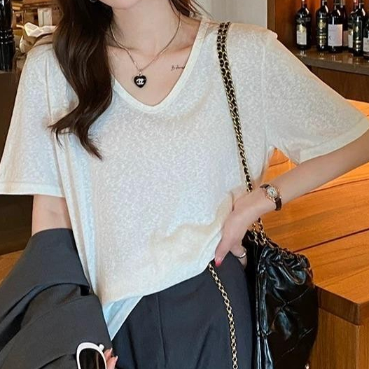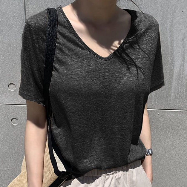 Hotpink ส่งจาก Bangkok🔥เสื้อยืดแขนสั้น สำหรับผู้หญิง ทำจากผ้าฝ้ายลินินและผ้าไหมน้ำแข็ง ทรงหลวม มีหลายสีให้เลือก คอกลม+คอวี S-2XL