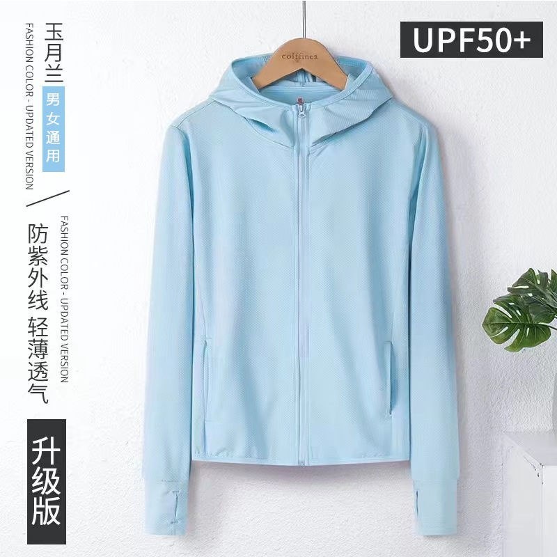 เสื้อผ้าป้องกันแสงแดด เสื้อฮู้ดกันแดด เสื้อกันยูวี UPF50+ เนื้อผ้าบางใส่สบาย สีพื้น แขนยาว ระบายอากาศได้ดี