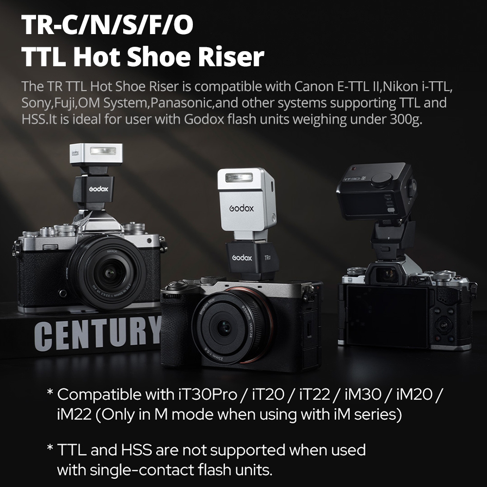 Godox TR TTL Hot Shoe Riser FS-R Single Contact Folding Hot Shoe Riser สําหรับ Godox Mini iFlash iT20 iT22 iT30PRO iM20 iM22 iM30