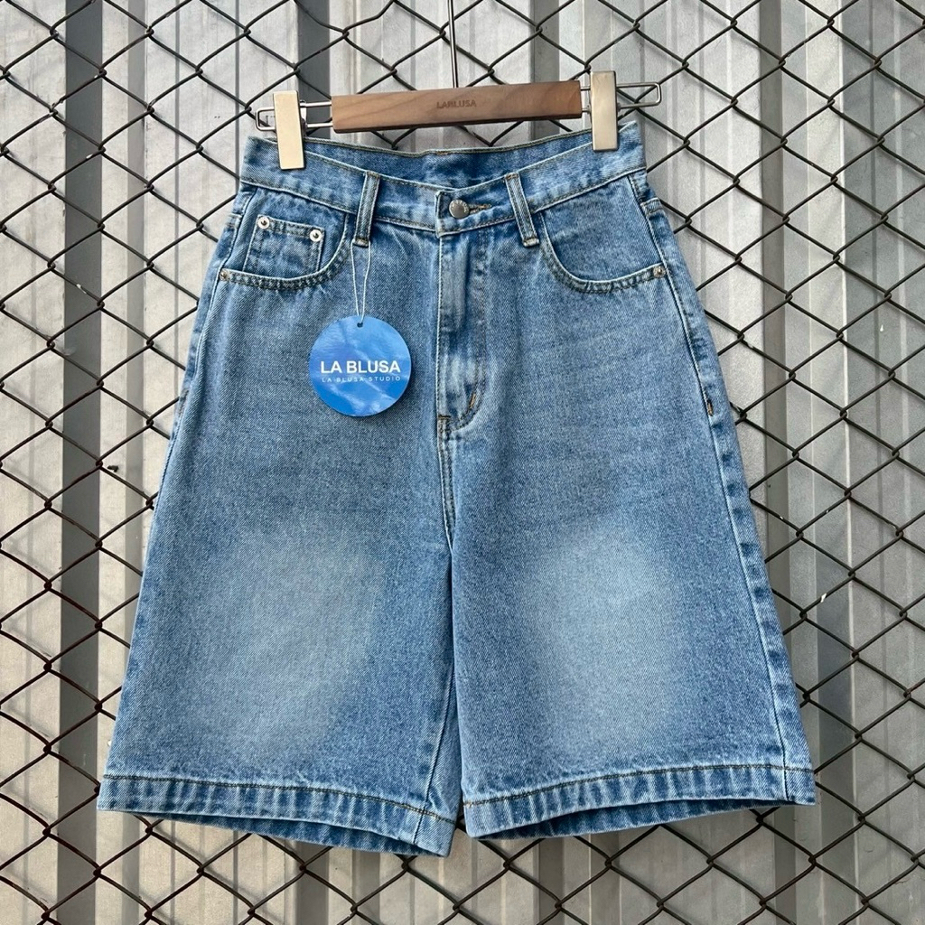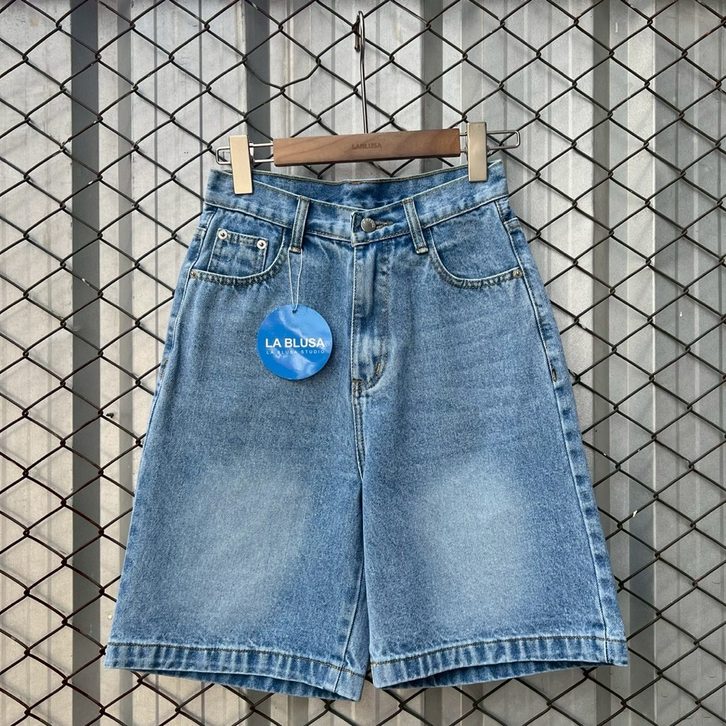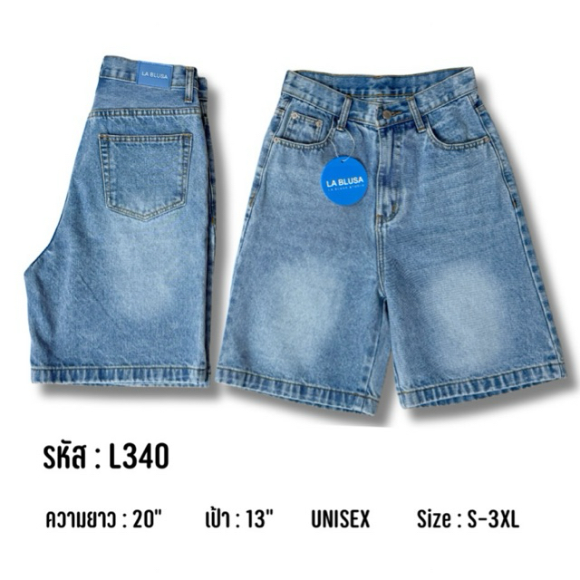 LABLUSA - LBS340 : กางเกงยีนส์ขา 3ส่วน ทรงเบสิค ผ้าไม่ยืด (Unisex)