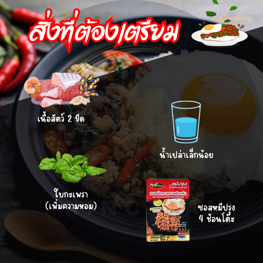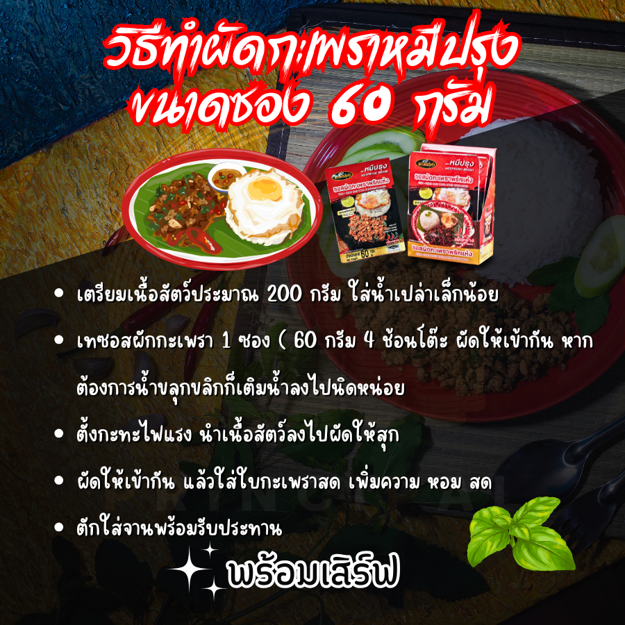 ซอสกะเพราพริกแห้งตราหมีปรุง(ซองเล็ก) ผัดไร้น้ำมัน