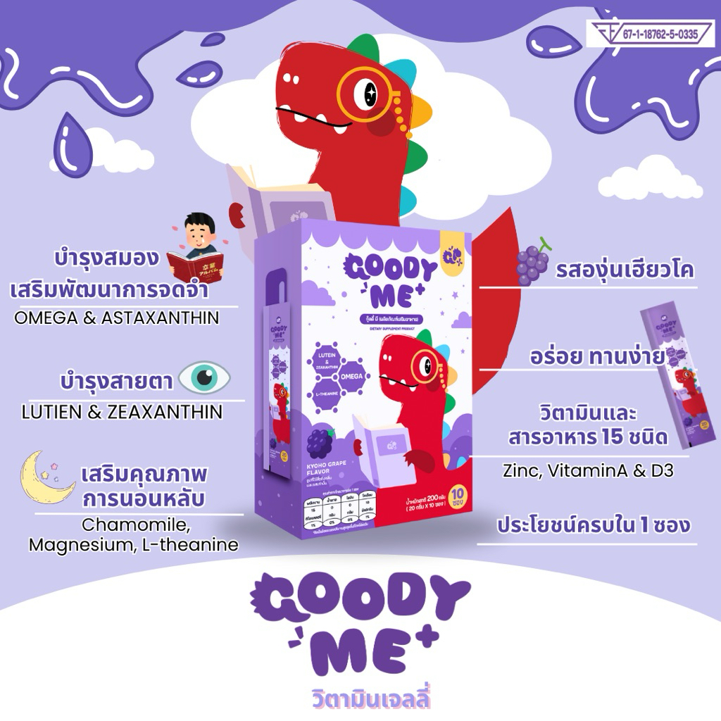 วิตามินเด็ก GOODY ME กู๊ดดี้มี วิตามินเจลลี่(รสองุ่น) บำรุงสมองและสายตา เพิ่มคุณภาพการนอนหลับ เสริมภูมิคุ้มกัน