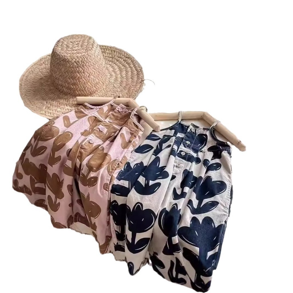[ML] 90-130 ซม.สาว Overalls น้ําหนักเบาสาวเกาหลี Casual แฟชั่นสลิง Jumpsuit เด็ก Jumpsuit ขากว้าง
