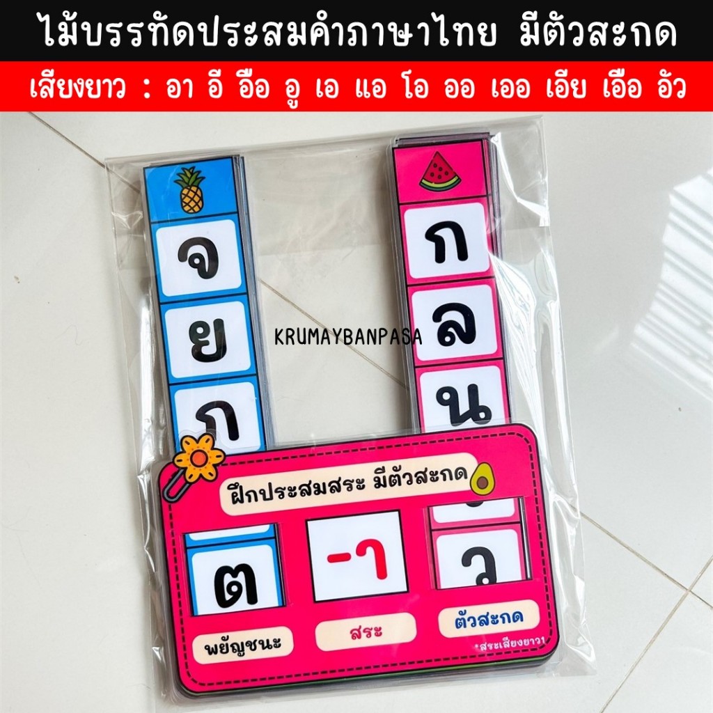 ของพร้อมส่ง ไม้บรรทัดประสมคำภาษาไทย มีตัวสะกด สื่อการสอนภาษาไทย สื่อทำมือ สอนอ่านออกเขียนได้