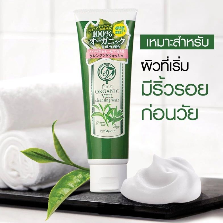 โฟมล้างหน้าฟาริส ชาเขียว ญี่ปุ่น 120g ออร์แกนิค เวล Faris Organic Veil Cleansing Wash อ่อนโยนต่อผิว