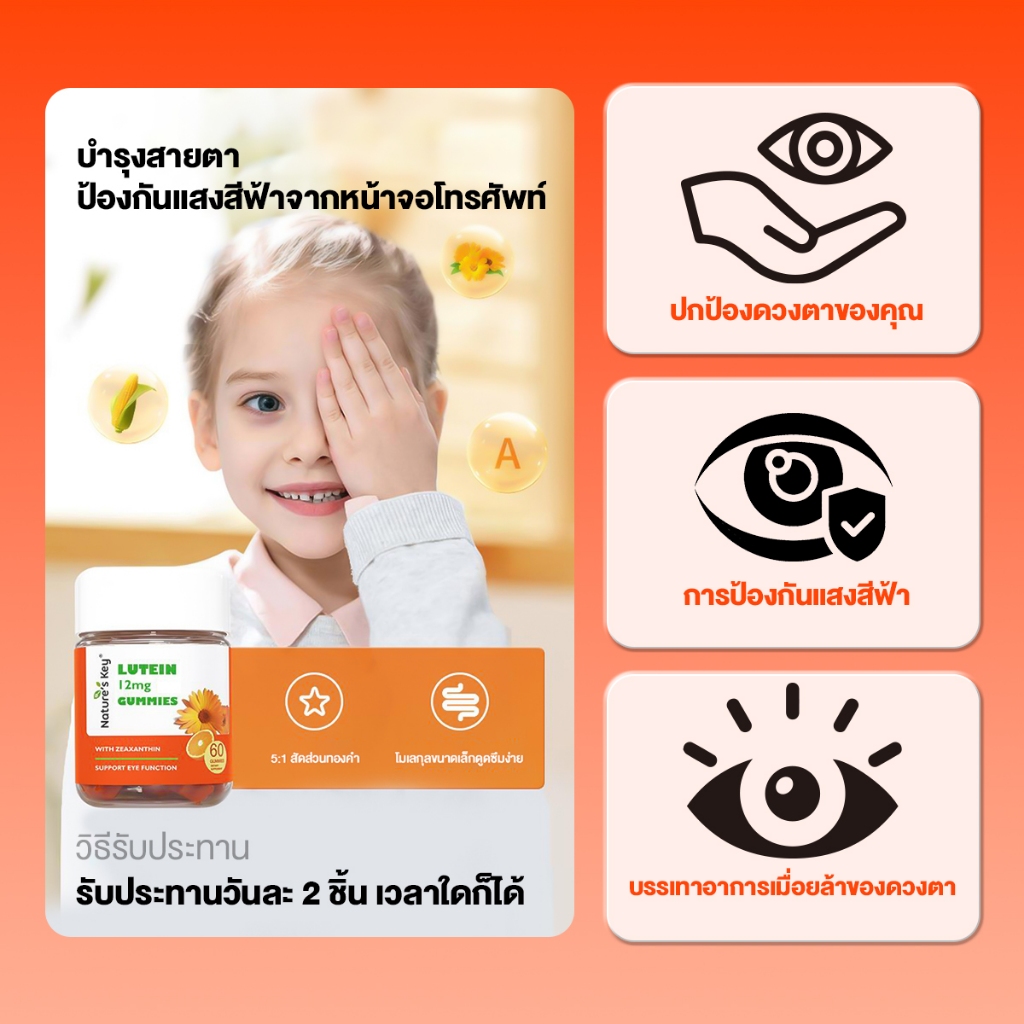 Nature's Key Lutein Gummies กัมมี่ลูทีน เสริมสร้างสุขภาพการมองเห็น และดวงตาสําหรับทุกวัย ป้องกันแสงสีฟ้าจากหน้าจอ