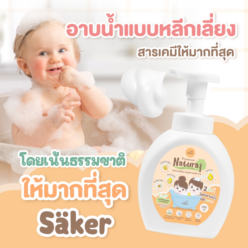 (เกรดแพทย์ผิวหนังรับรอง)คุณภาพเกินราคา Saker โฟมอาบน้ำ&สระผม จากธรรมชาติ 2in1อ่อนโยนต่อผิวขวดปั๊มโฟม