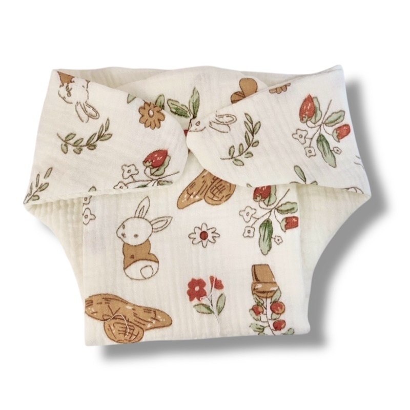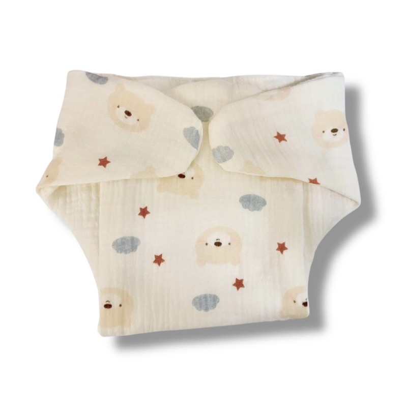 กอ1: กางเกงผ้าอ้อมติดเทป 0-12เดือน ผ้ามัสลินย่นออแกนิค แบบซักได้ เด็กแรกเกิด