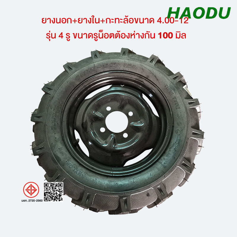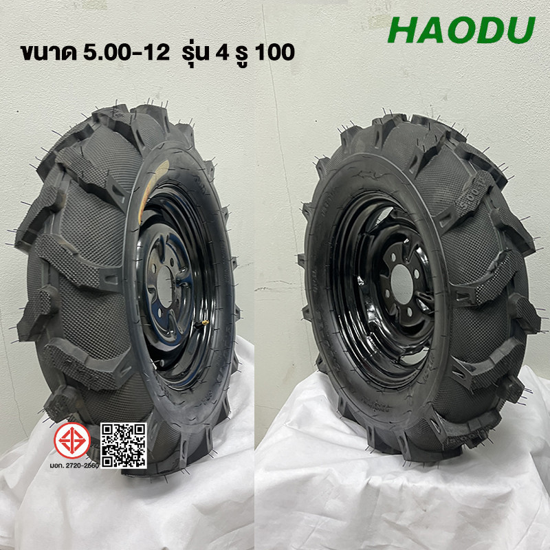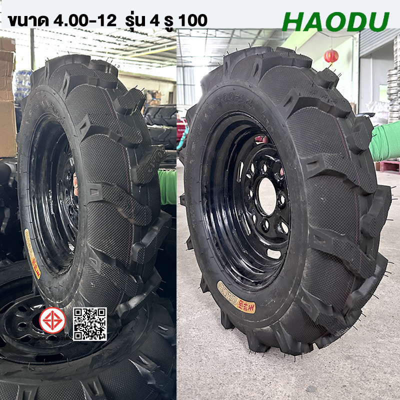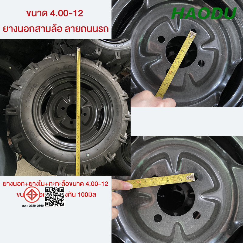 HAODU ล้อยางสามล้อ ล้อพร้อมยางส ขนาด 4.00-12 500-12 รุ่น 4รู ยางนอก+ยางใน+กะทะล้อชุดล้อล้อลายก้างปลาใช้กับเพลาท้ายสามล้อ
