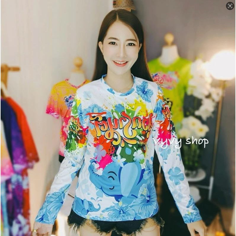 เสื้อเชิ้ตลายดอกไม้แขนยาว ผ้ามันเงา พิมพ์ลายทั้งตัว ใส่ได้ทั้งชายและหญิง