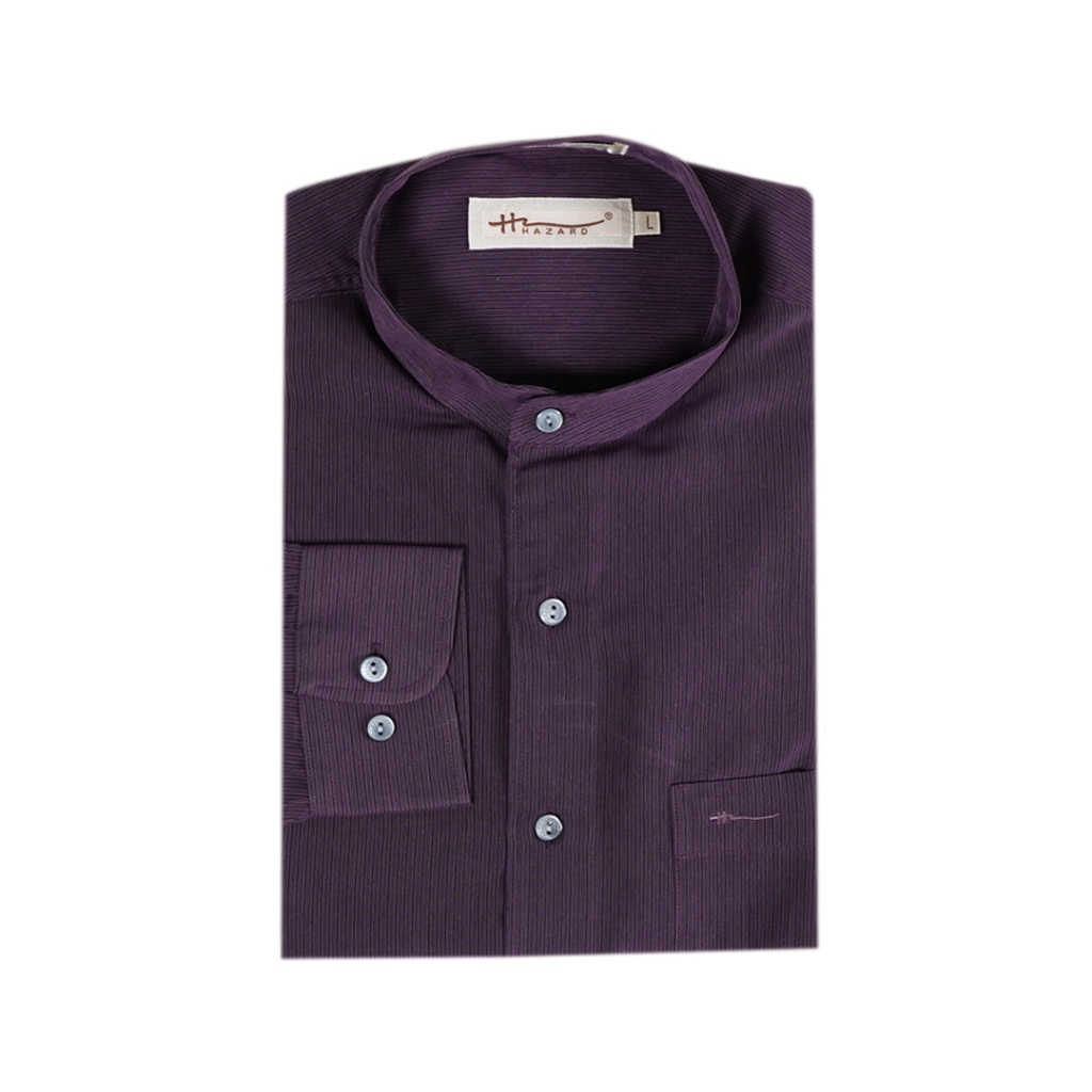 Hazard เสื้อเชิ้ตทำงานคอจีนแขนยาวลายทาง ผ้า Micro Filament(ไมโครฟิลาเมนท์) สีม่วงเข้มสุด