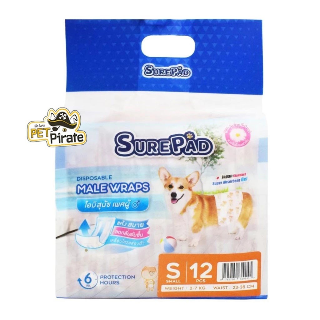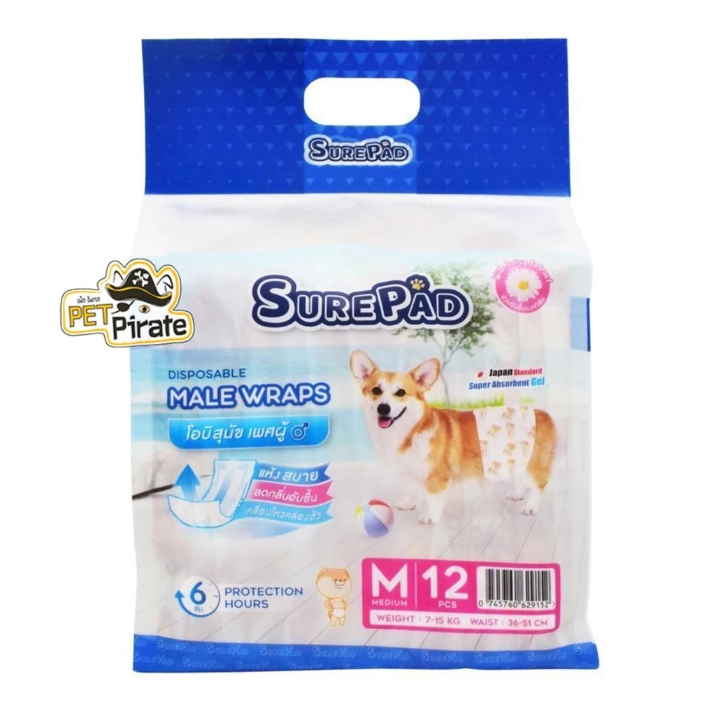 SurePad Male Wraps โอบิสุนัขตัวผู้ ผ้าอ้อมรัดเอว เก็บกลิ่นได้ดี โอบิหมา ใส่สบาย ซึมซับดีเยี่ยม