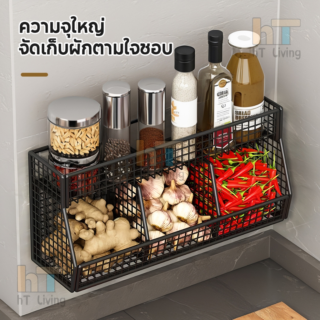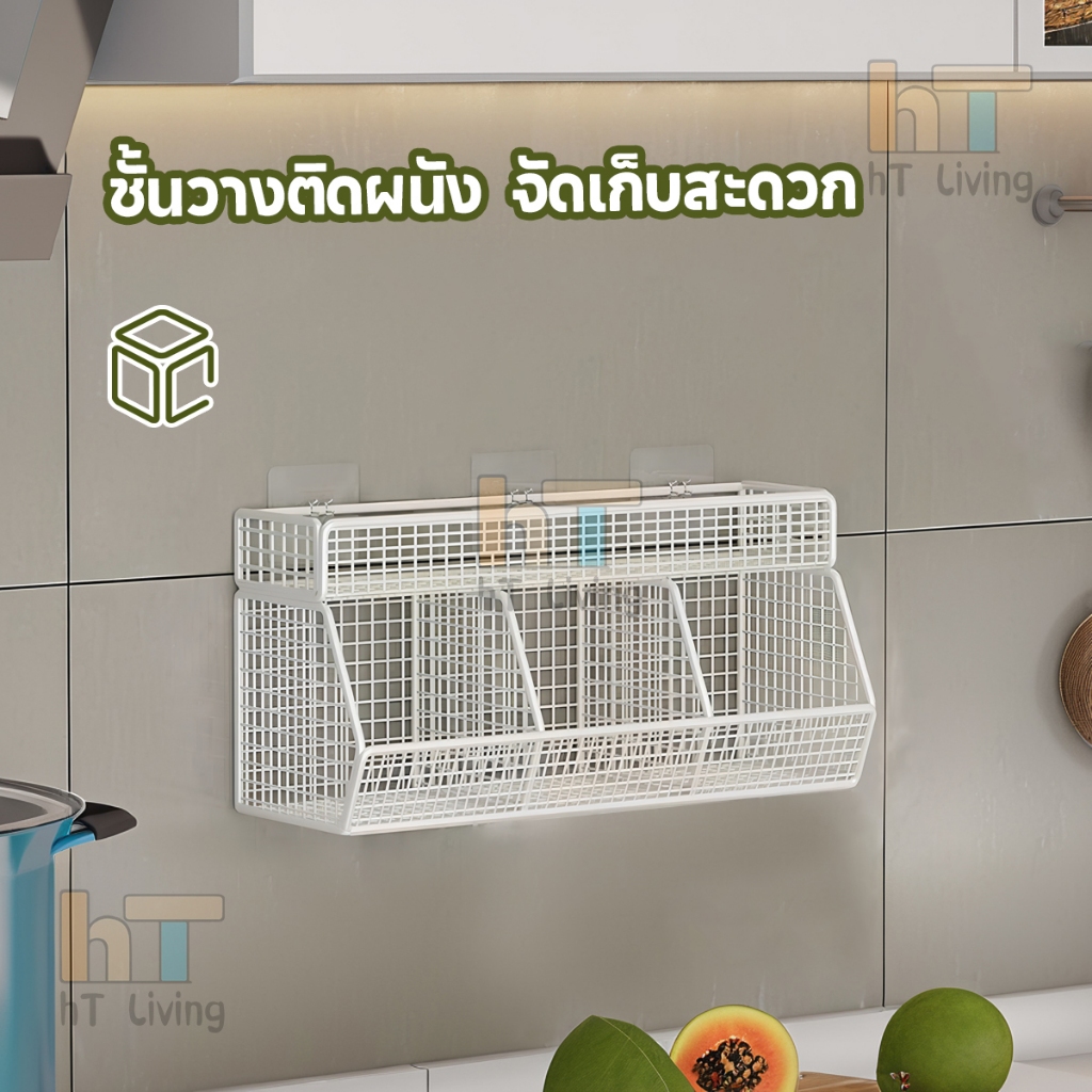 ชั้นวางของในครัว ชั้นวางเก็บเครื่องเทศ ไม่ต้องเจาะรู โครงเหล็ก ไม่เป็นสนิม