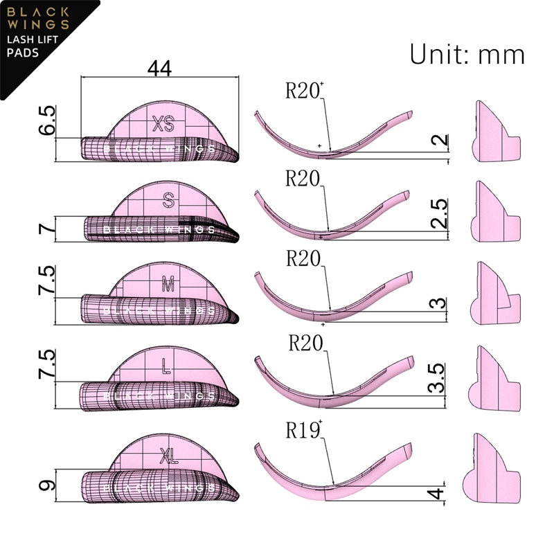 Blackwings 5 คู่ Eyelash Perm แผ่นซิลิโคน,แผ่นดัดผมทนความร้อนหนาสําหรับ Lash Lift, เครื่องมือเกรดร้านเสริมสวยพร้อมแผนภูมิคู่มือขนาด, อุปกรณ์เสริมแบบใช้ซ้ําได้ Hypoallergenic