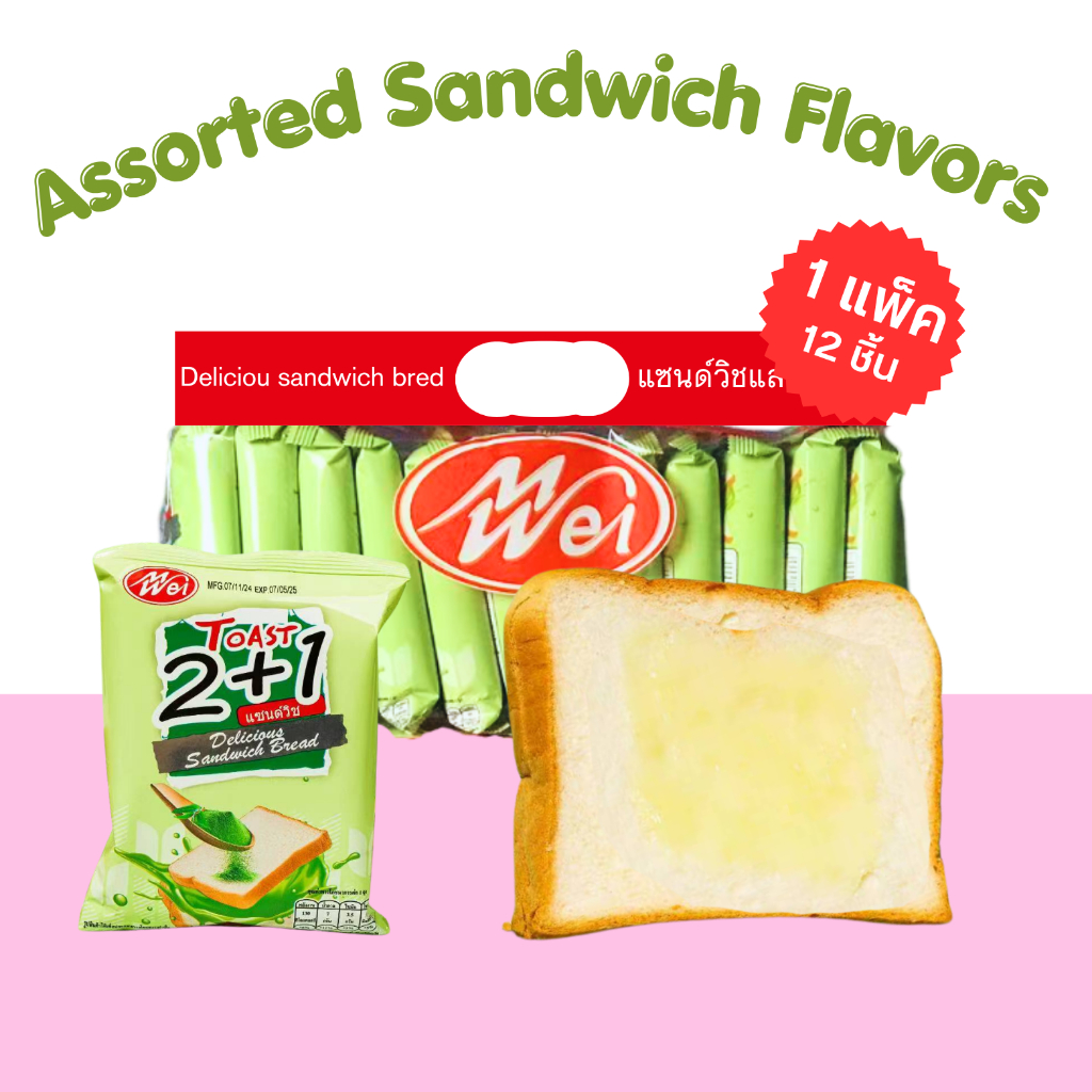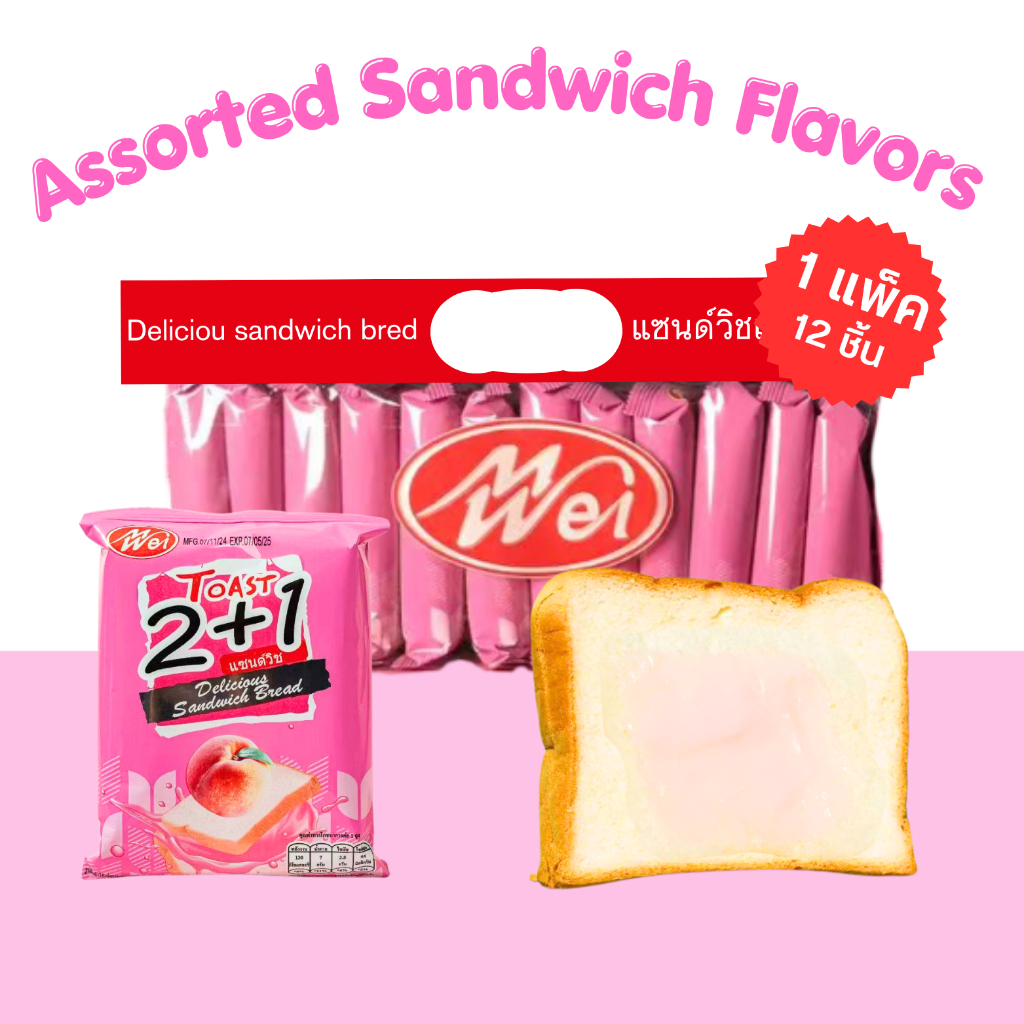 Meiwei แซนด์วิชคละรส 2รส 1ลัง144ชิ้น หอมอร่อย สินค้ายอดนิยม (MWแซนด์วิชคละ2ชาเขียว,พีช)
