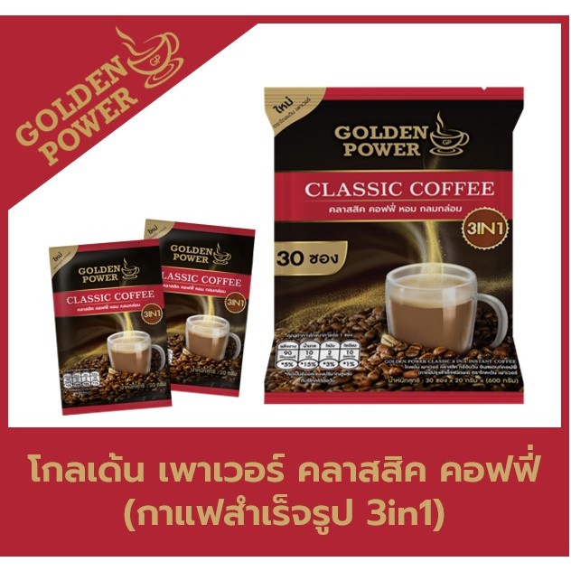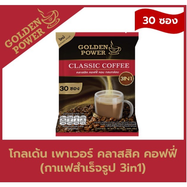[30ซอง ยกลัง20ถุง] กาแฟ คลาสสิค คอฟฟี่ 3in1 ตราโกลเด้น เพาเวอร์ (Golden Power Classic Coffee 3in1)